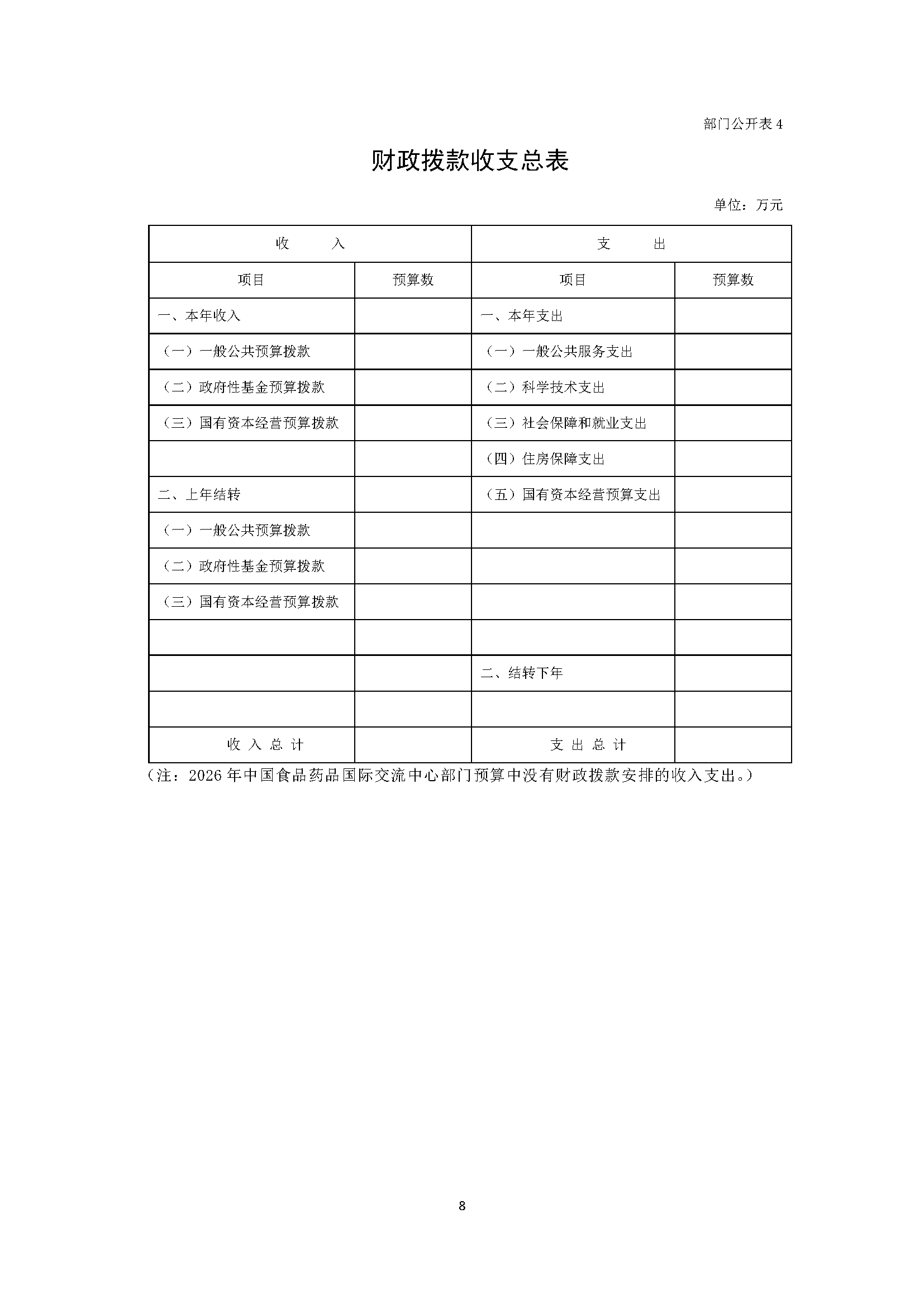 中国食品药品国际交流中心2026年部门预算