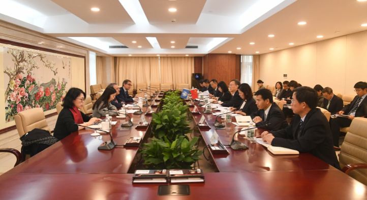 Yang Sheng, deputy commissioner of the National Medical Products Administration (NMPA), met with Director of the Regulation and Prequalification Department of the World Health Organization (WHO) Rogerio Gaspar and WHO Representative to China Martin Taylor in Beijing on Nov 7.