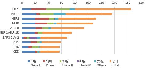 Figure 5 Number and stage of clinical trials of top 10 targets before 2021