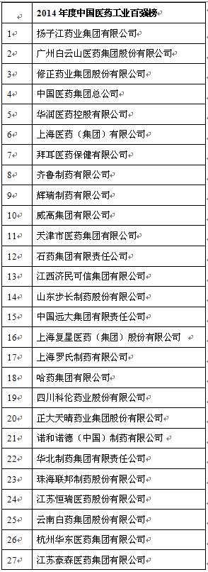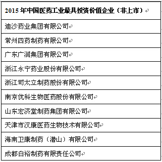 2015年7月11日,由中国医药工业信息中心主办的2015年(第32届)全国医药工业信息年会在成都召开。本届信息年会发布了行业权威的2014年度中国医药工业百强榜,以及“2015年中国医药研发产品线最佳工业企业”、“2015年中国医药工业最具投资价值企业(非上市)”、“2015年中国医药工业最具成长力企业”名单。